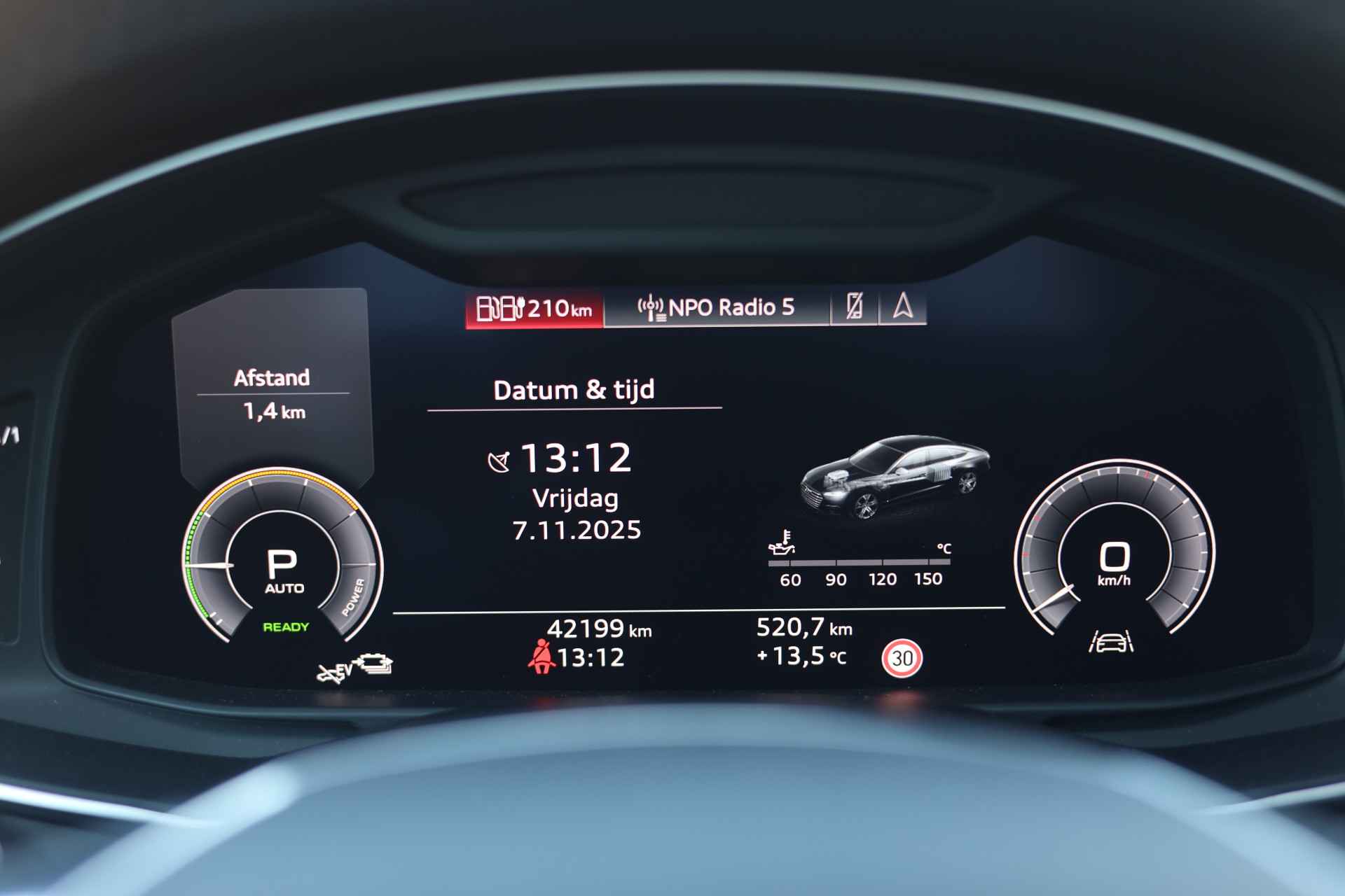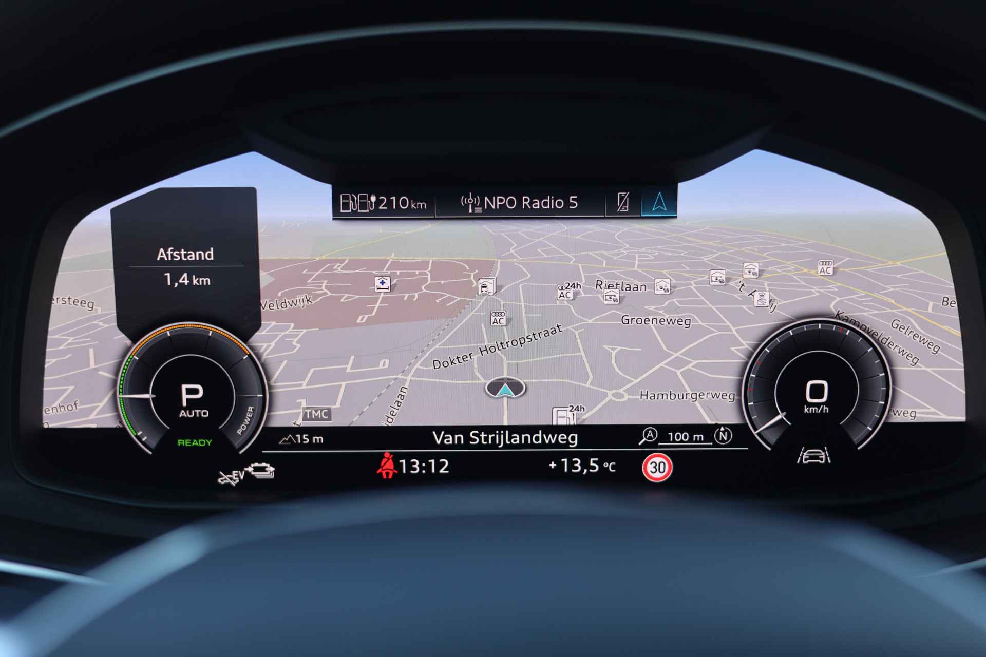Pragmatisch en veilig als deze auto is, beschikt hij over diverse veiligheidssystemen. In het instrumentarium kunt u bovendien de verkeersborden zien die u onderweg tegenkomt. Zo helpt deze Audi u om veiliger te rijden. Het Lane-keeping systeem registreert permanent of u binnen de lijnen van de rijstrook blijft; dwaalt u onbedoeld af, dan waarschuwt het systeem en corrigeert de koers. Het forward collision warning-systeem waarschuwt indien een botsing dreigt met een voorliggend of tegemoetkomend voertuig. U bent mede dankzij head-up display, dodehoekdetectie, autonoom remsysteem en bandenspanningcontrolesysteem steeds veilig onderweg.