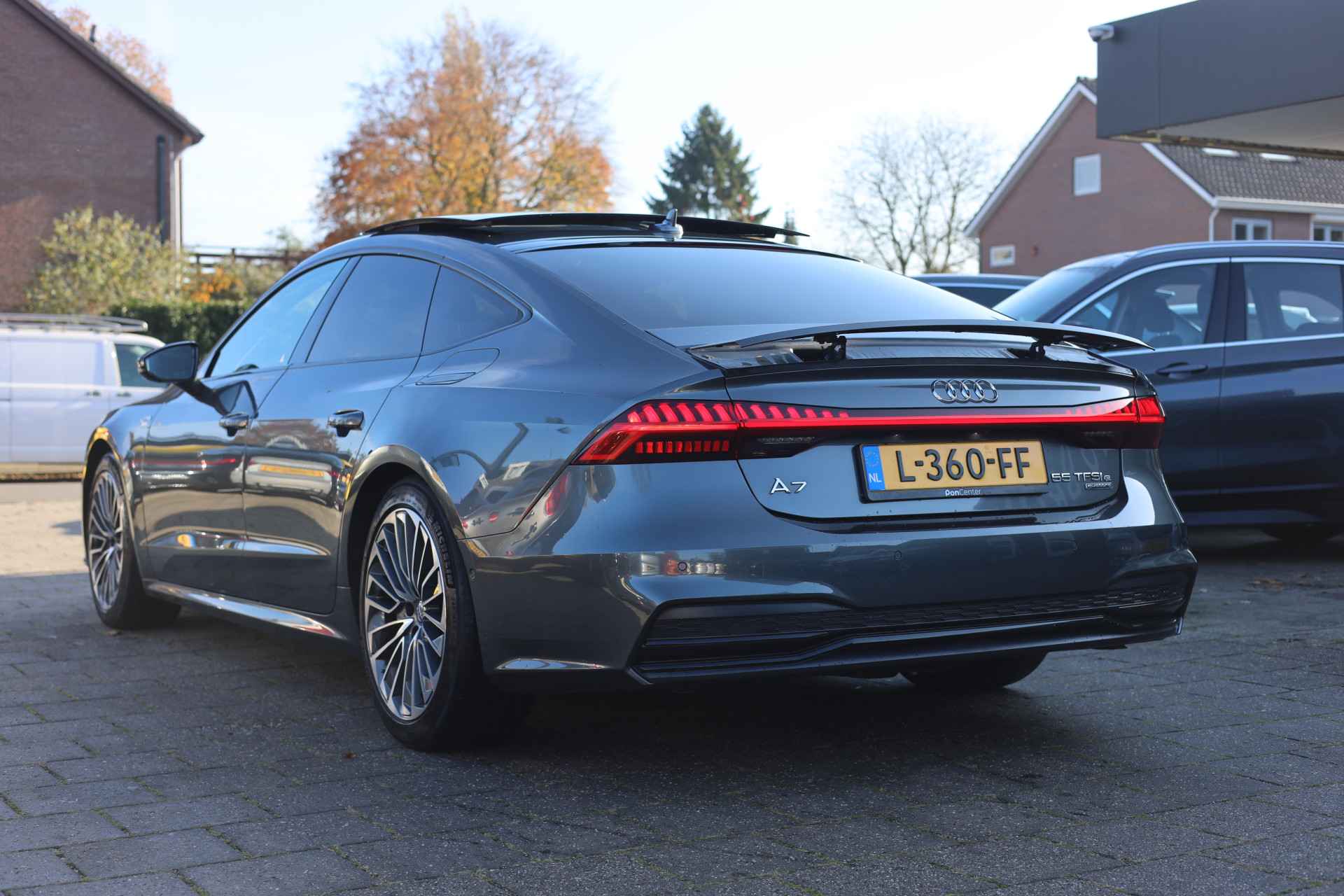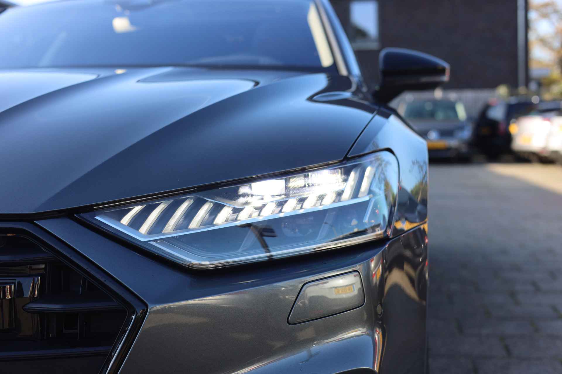 Hij is stijlvol en comfortabel, deze Audi A7 Sportback, en hij is ontworpen om u veilig en comfortabel te laten rijden onder alle omstandigheden. Een aantrekkelijke en fraaie optie is de expressieve S-Line styling. De benzinemotor geeft deze auto sportieve prestaties en zorgt voor een laag brandstofverbruik. Het lederen interieur geeft deze auto luxe en klasse. Koude start? Niet met de verwarmbare voorstoelen! De sportstoelen geven u veel zitsteun. Een heerlijk zonnetje, of indrukwekkende wolkenpartijen? Bekijk ze onbelemmerd door het elektrisch bediende glazen panoramadak. Met een druk op de knop gaat de elektrische achterklep open. Ook achterin heerst een luxe sfeer, vanwege de verwarmde achterbank. Tot de voorzieningen van deze auto behoren LED koplampen, sportonderstel, warmtewerend glas, trailer assistent, in delen neerklapbare achterbank en LED-achterlichten.