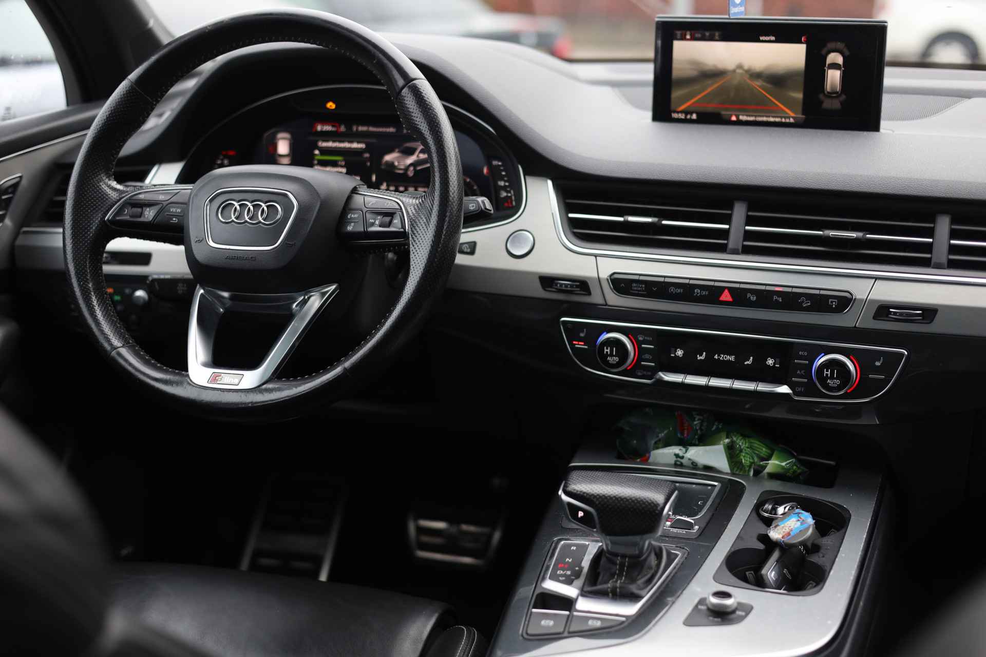 Zoals u mag verwachten van deze Audi Q7 is hij uitgerust met een reeks aan actieve veiligheidssystemen. De veiligheid van deze auto wordt verder verhoogd door dodehoekdetectie, hill hold functie, autonoom remsysteem en bandenspanningcontrolesysteem.