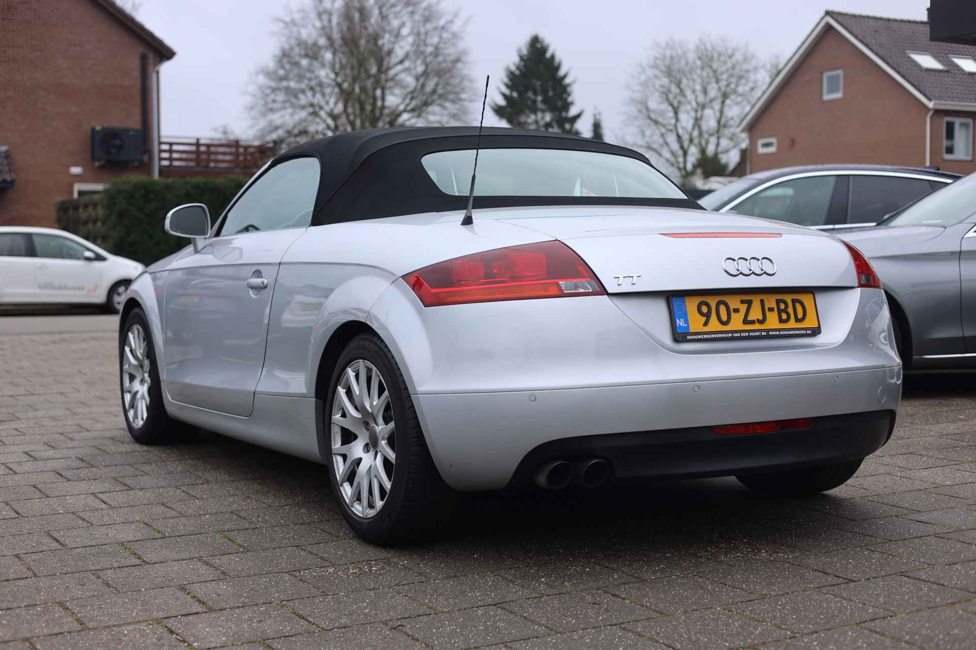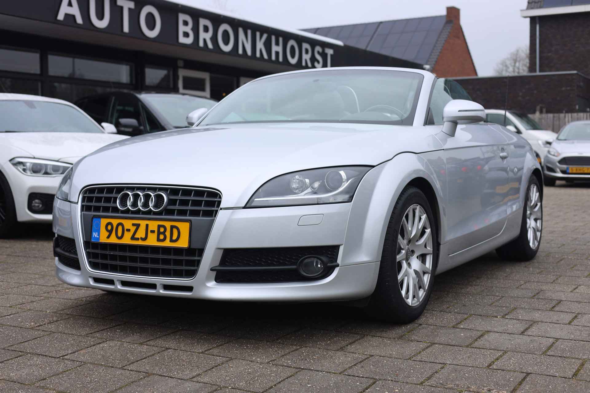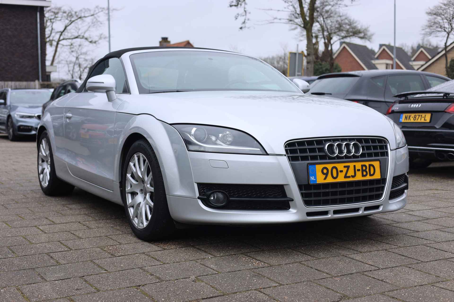 Zodra de zon zich laat zien, kunt u heerlijk genieten achter het stuur van deze cabriolet. De vormgeving van deze Audi TT Roadster is stijlvol maar ingetogen en dat maakt meteen duidelijk dat u van deze auto pure kwaliteit mag verwachten. In deze auto vindt u een benzinemotor en een automatische transmissie. De stijlvolle, luxe uitstraling is inbegrepen in de vorm van leren bekleding. Bestuurder en bijrijder krijgen een warm welkom: deze Audi TT Roadster is voorzien van verwarmbare voorstoelen. Snel genieten van de buitenlucht is gemakkelijker dan ooit met dank aan het elektrisch bedienbare cabriodak. De gasontladingslampen van de xenonverlichting zorgen voor een krachtige en heldere lichtbundel. U wordt in deze auto ook getrakteerd op 16 inch lichtmetalen velgen, sportonderstel, halflederen bekleding en snelheidsafhankelijke stuurbekrachtiging.