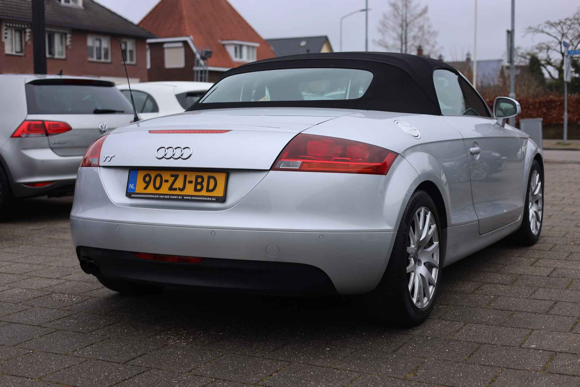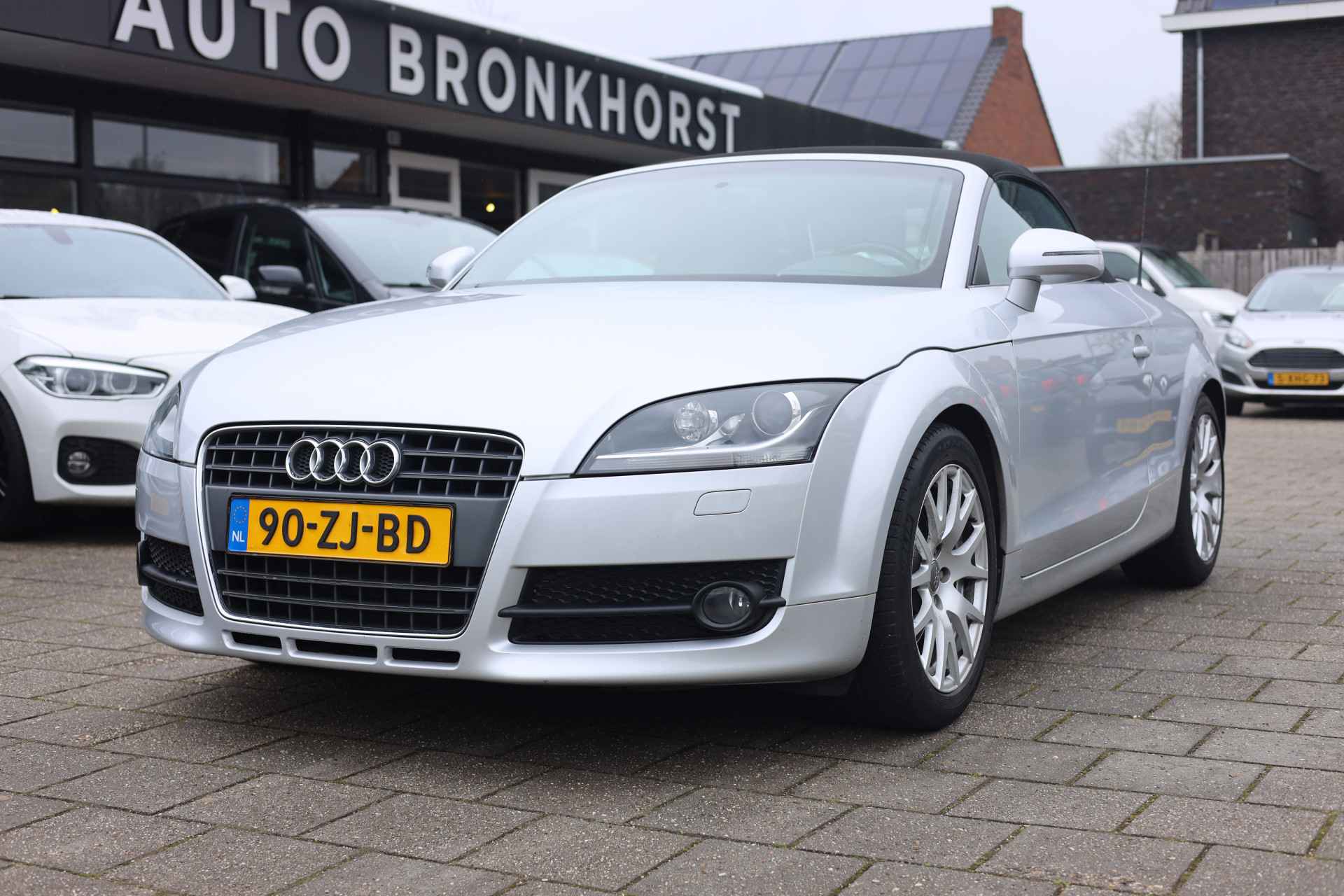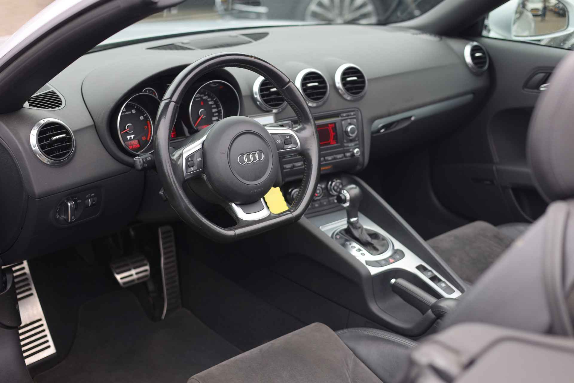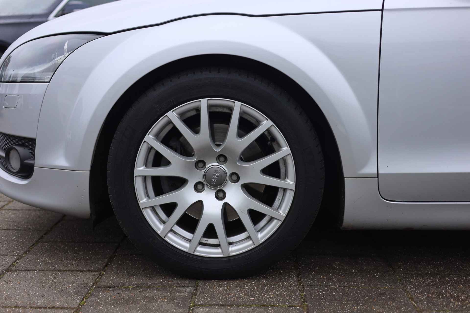 Zodra de zon zich laat zien, kunt u heerlijk genieten achter het stuur van deze cabriolet. De vormgeving van deze Audi TT Roadster is stijlvol maar ingetogen en dat maakt meteen duidelijk dat u van deze auto pure kwaliteit mag verwachten. In deze auto vindt u een benzinemotor en een automatische transmissie. De stijlvolle, luxe uitstraling is inbegrepen in de vorm van leren bekleding. Bestuurder en bijrijder krijgen een warm welkom: deze Audi TT Roadster is voorzien van verwarmbare voorstoelen. Snel genieten van de buitenlucht is gemakkelijker dan ooit met dank aan het elektrisch bedienbare cabriodak. De gasontladingslampen van de xenonverlichting zorgen voor een krachtige en heldere lichtbundel. U wordt in deze auto ook getrakteerd op 16 inch lichtmetalen velgen, sportonderstel, halflederen bekleding en snelheidsafhankelijke stuurbekrachtiging.