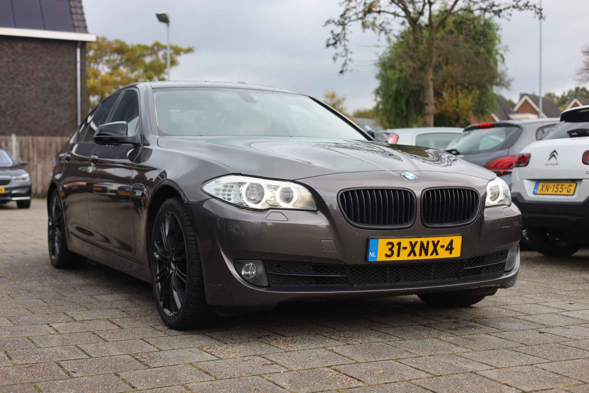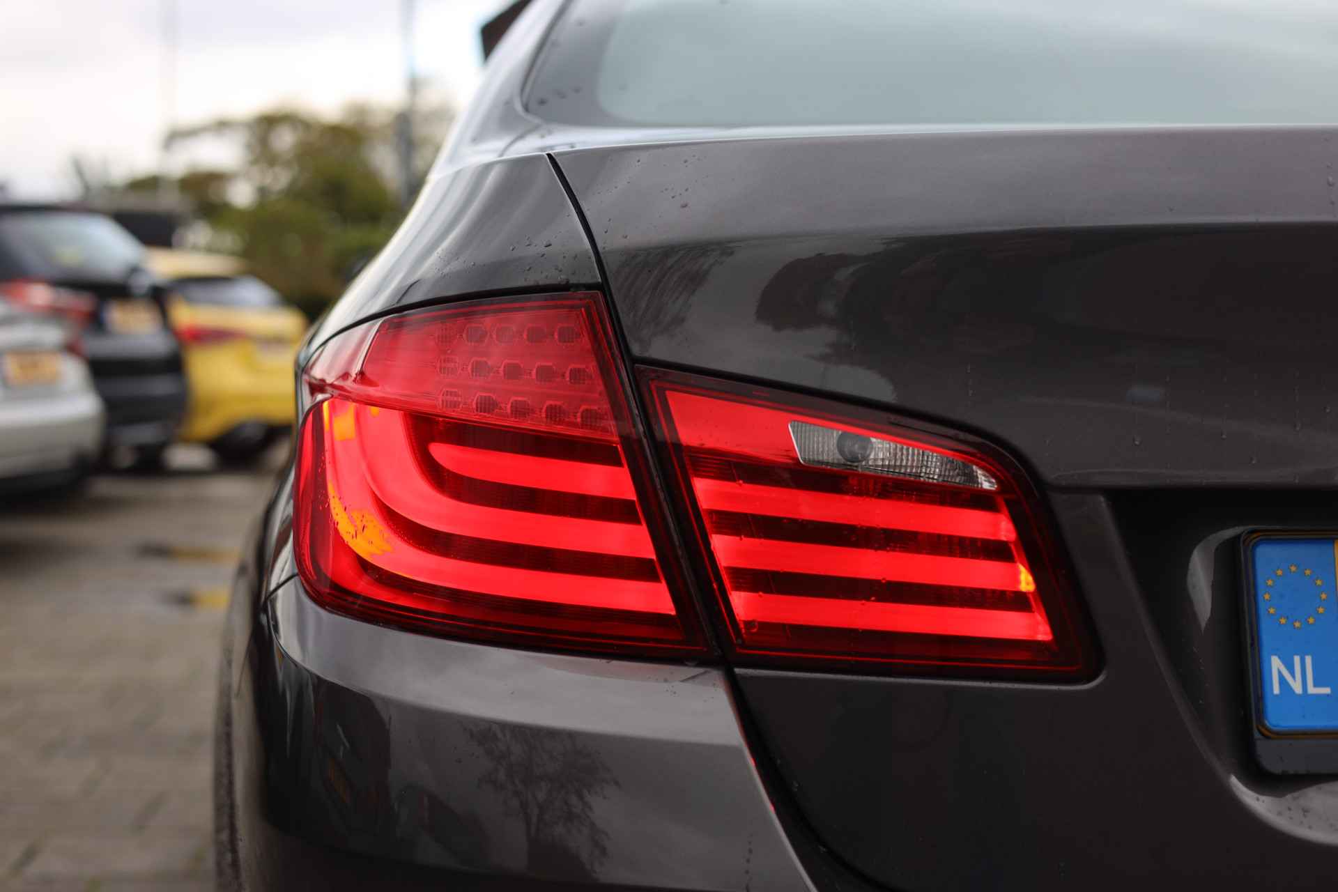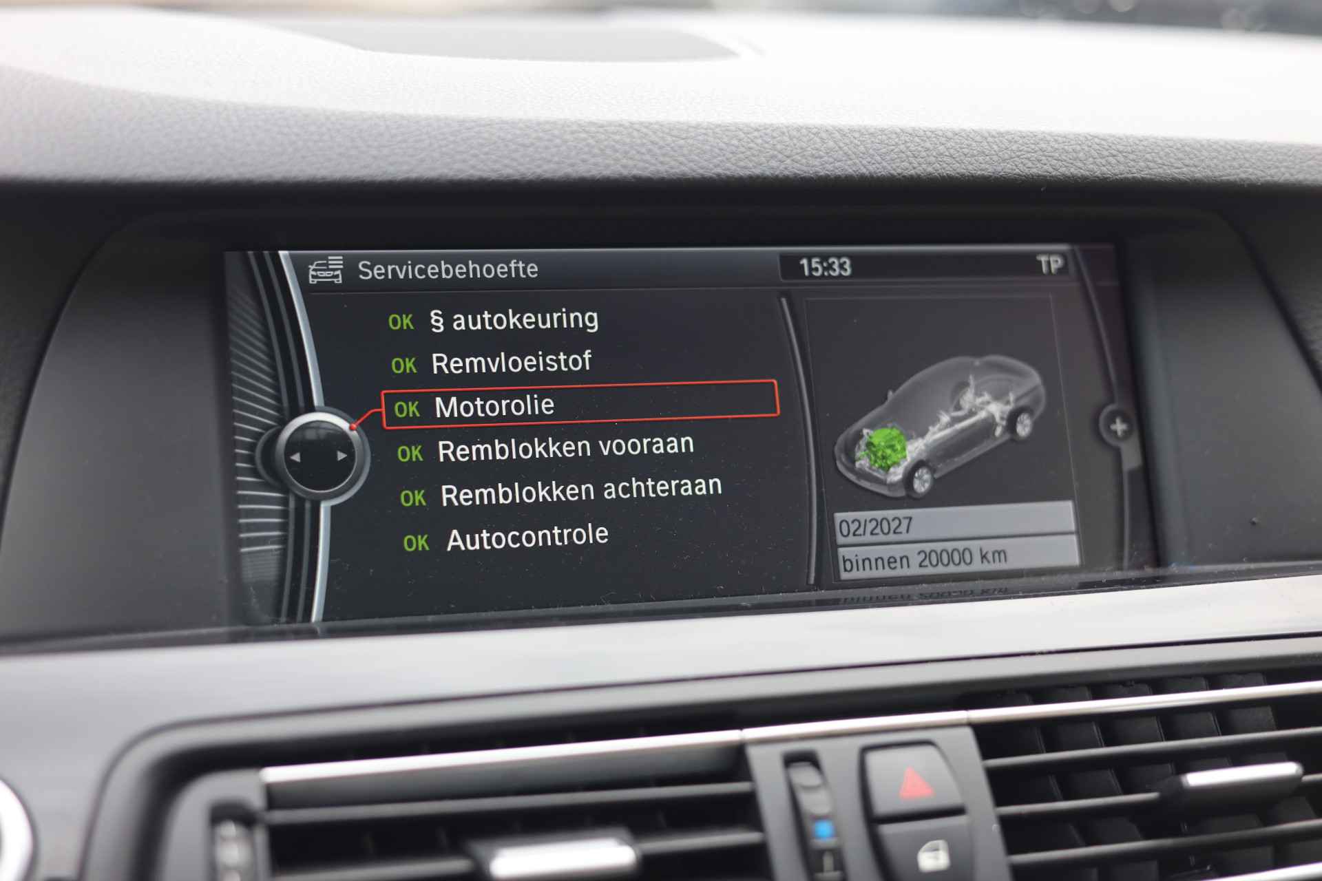 Alle technologie in de BMW 5-serie is er op gericht om uw rit veilig en gemakkelijk te laten verlopen. Dit mooie exemplaar komt uit 2012. De benzinemotor zorgt samen met de automatische transmissie voor prima prestaties. Houdt u van een luxe uitstraling? Dan is het lederen interieur een heel aantrekkelijke extra! Bij de complete uitrusting van deze auto hoort ook stoelverwarming. Xenonverlichting zorgt in het donker voor beter zicht.