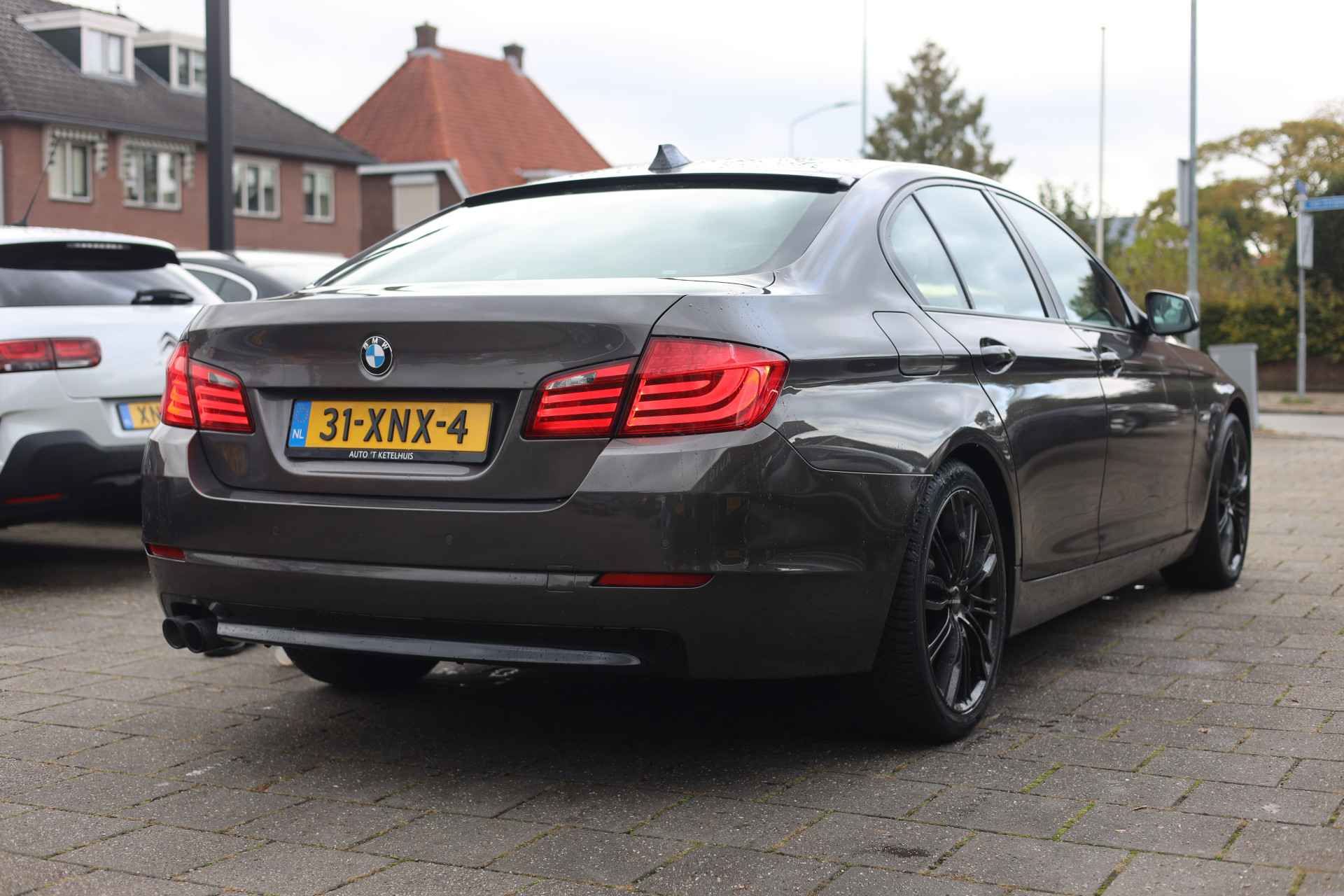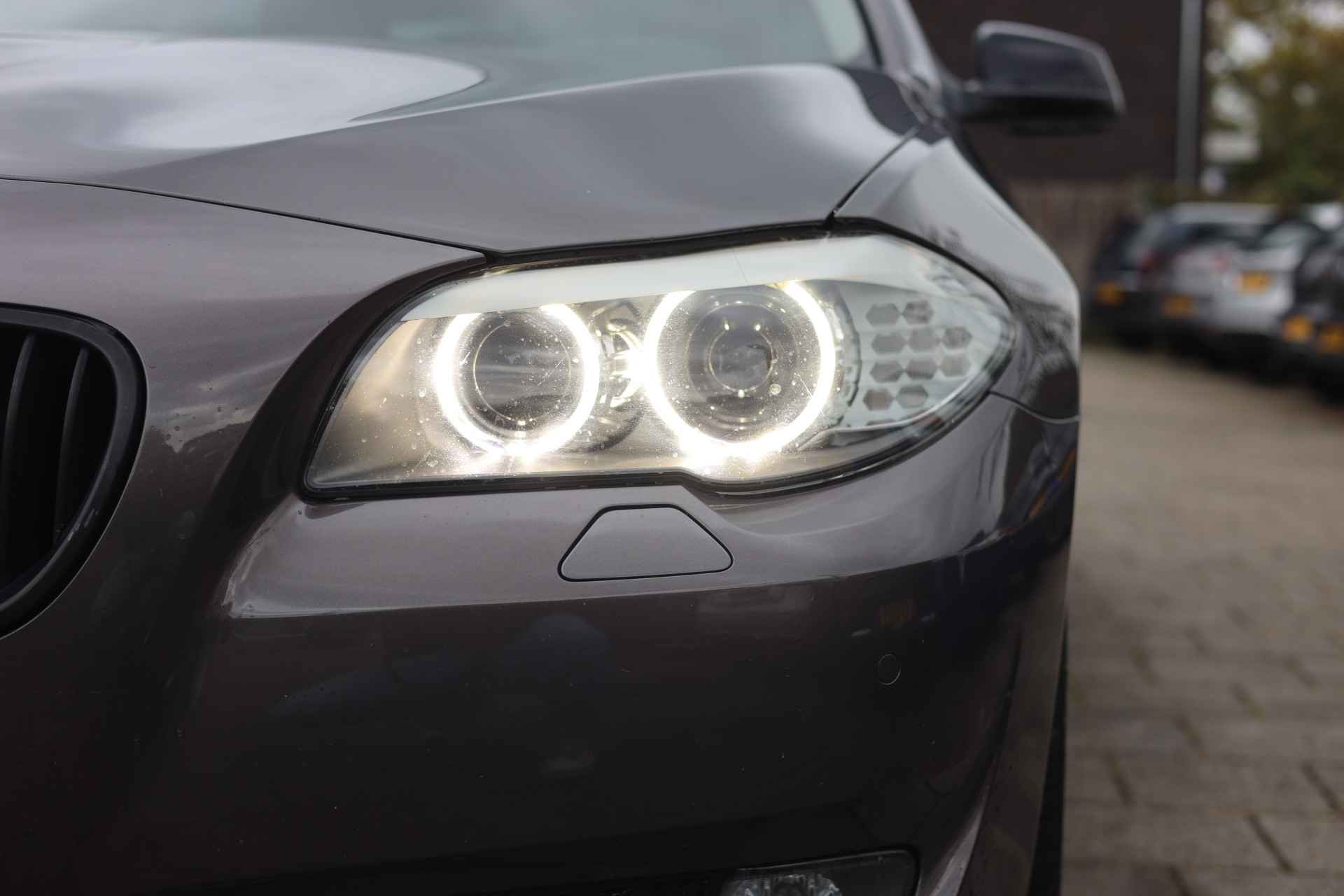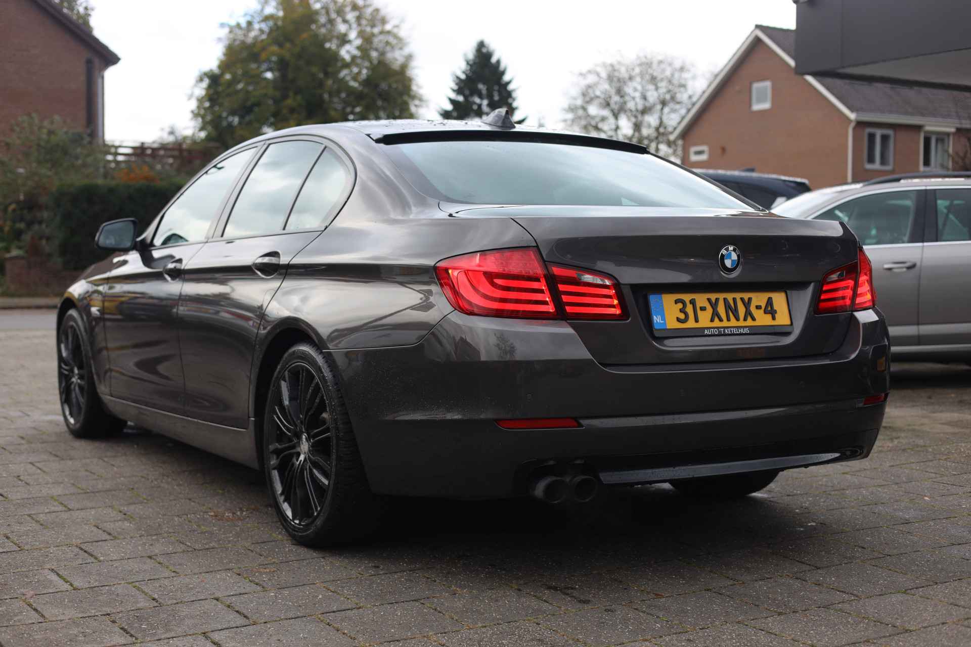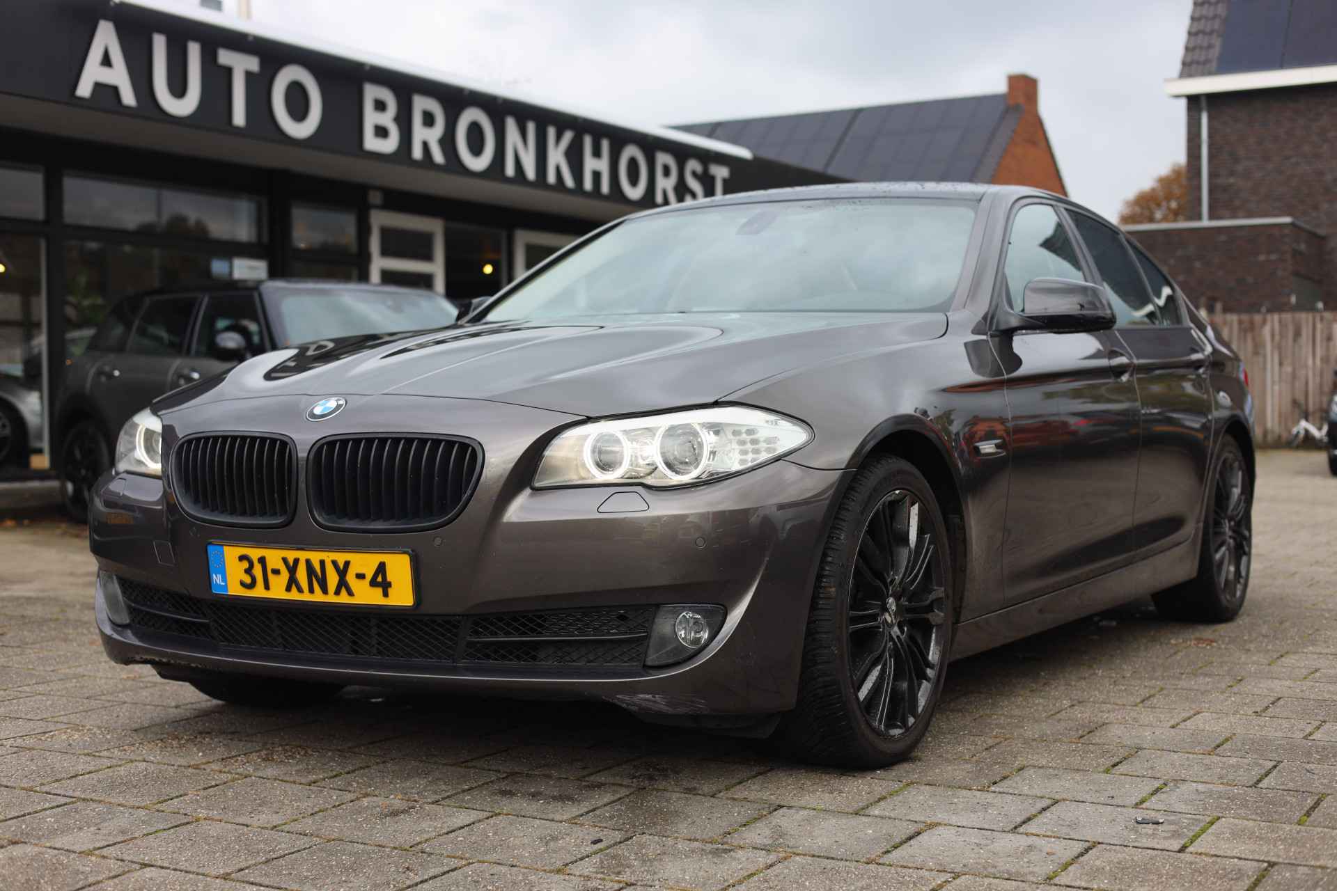Alle technologie in de BMW 5-serie is er op gericht om uw rit veilig en gemakkelijk te laten verlopen. Dit mooie exemplaar komt uit 2012. De benzinemotor zorgt samen met de automatische transmissie voor prima prestaties. Houdt u van een luxe uitstraling? Dan is het lederen interieur een heel aantrekkelijke extra! Bij de complete uitrusting van deze auto hoort ook stoelverwarming. Xenonverlichting zorgt in het donker voor beter zicht.