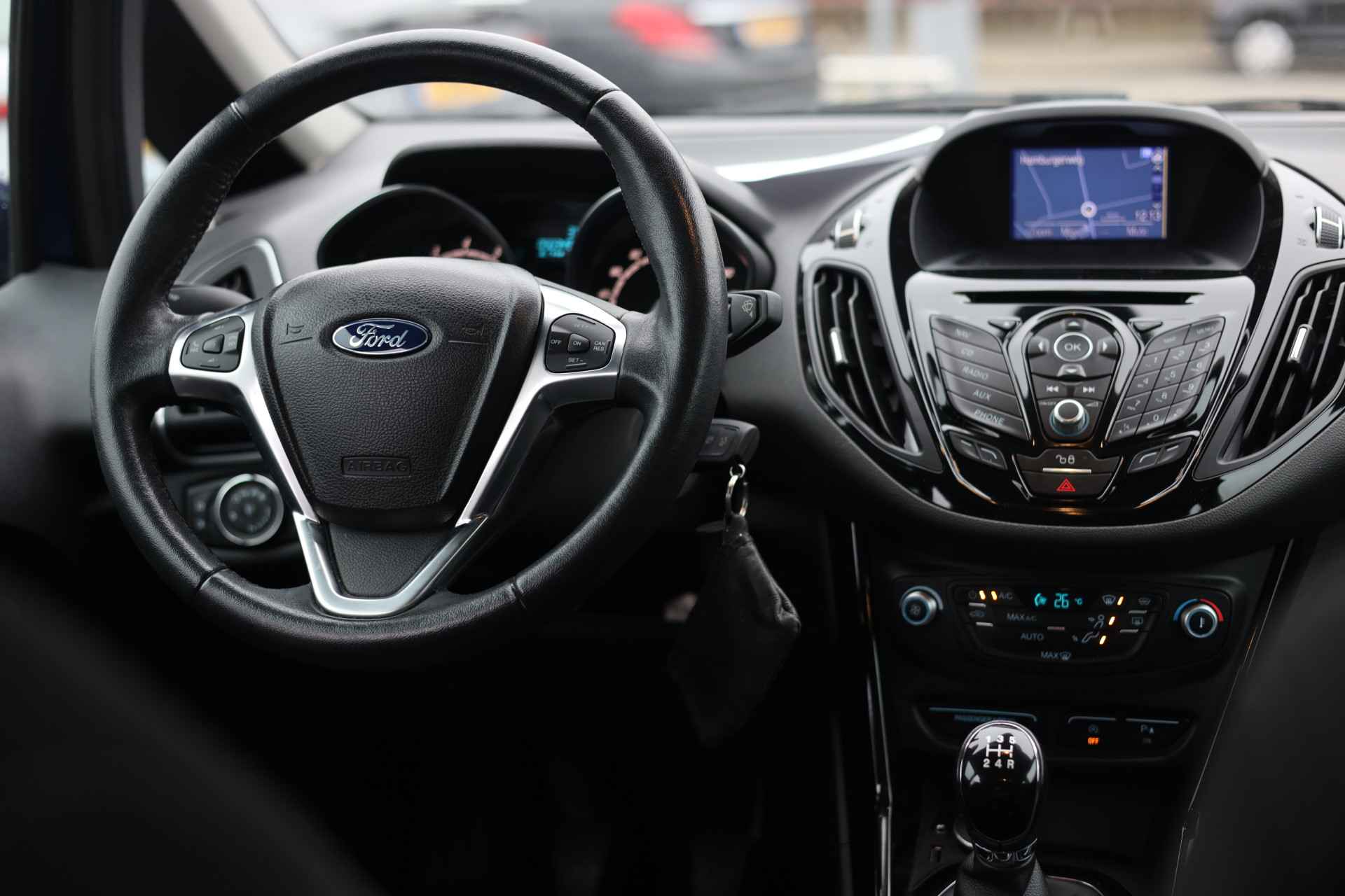 Hier heeft u plek voor het hele gezin inclusief bagage. Lekker hoor, zo'n MPV. De aandrijving van deze Ford wordt verzorgd door een driecilinder benzinemotor en een handgeschakelde vijfversnellingsbak. Deze auto is ook voorzien van stoelverwarming. De uitmonstering van deze auto wordt gecompleteerd door onder meer 16 inch lichtmetalen velgen, LED-dagrijverlichting, in delen neerklapbare achterbank en verstelbare lendensteunen.