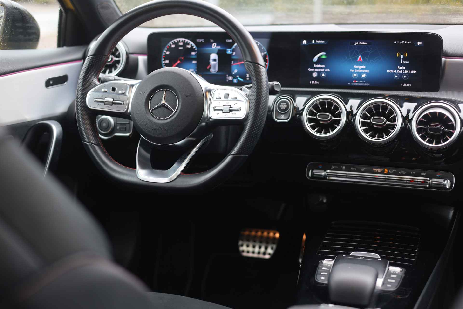 De Mercedes-Benz A-klasse vertegenwoordigt het beste van degelijk Duits design. Dit dealeronderhouden exemplaar is geleverd in 2022 en heeft 58667 kilometer op de teller staan. Exclusiviteit en sportiviteit komen samen in de AMG-styling. De aandrijving komt voor rekening van een benzinemotor en een automatische transmissie. Zit u goed? De stoelen zijn eenvoudig instelbaar dankzij de elektrische bediening met geheugen. Voel die ruimte eens! Lekker veel licht door het elektrisch bediende glazen panoramadak. De matrix LED-verlichting in de koplampen bestaat uit een raster van lichtpunten met maximale opbrengst. Bij tegenliggers past het systeem precies die punten aan die hinderlijk kunnen zijn. U behoudt maximaal zicht! Tot de voorzieningen van deze auto behoren 18 inch lichtmetalen velgen, AMG-styling, donker getint glas achter, in delen neerklapbare achterbank en verstelbare lendensteunen.