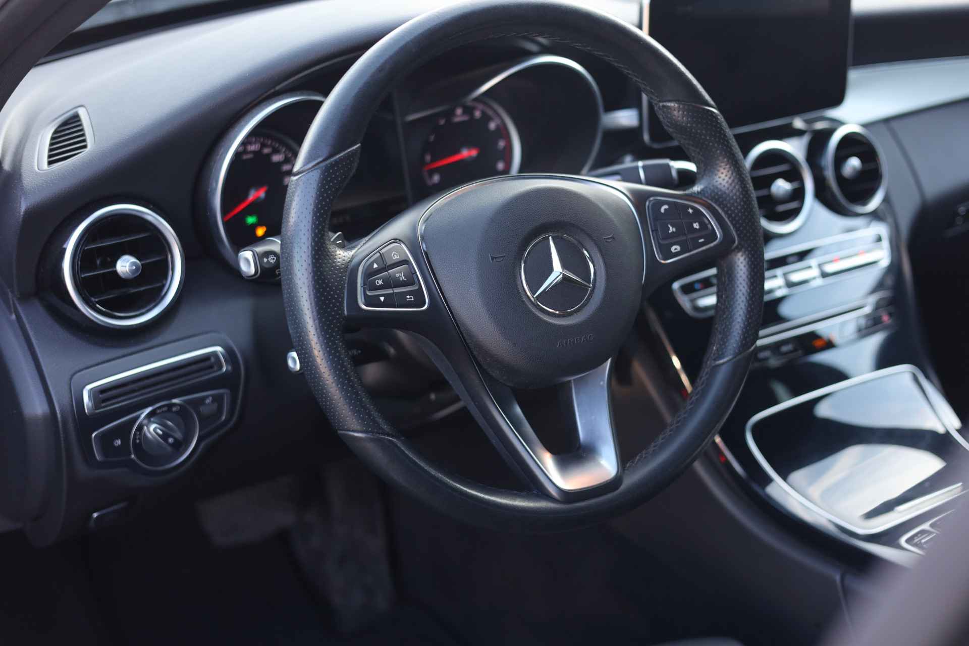 Noemt u eens een Duits B-merk? Kennen ze niet. Uitstekende auto's, al vele decennia lang. Dat geldt ook voor deze. In deze auto vindt u een benzinemotor en een automatische transmissie. De lederen bekleding geeft het interieur een rijke en luxe uitstraling. Een weldaad voor u en uw bijrijder: deze Mercedes-Benz C-klasse heeft verwarmbare voorstoelen. In deze Mercedes-Benz profiteert u onder andere ook van: 17 inch lichtmetalen velgen, LED koplampen, sportonderstel, warmtewerend glas, in delen neerklapbare achterbank en LED-achterlichten.