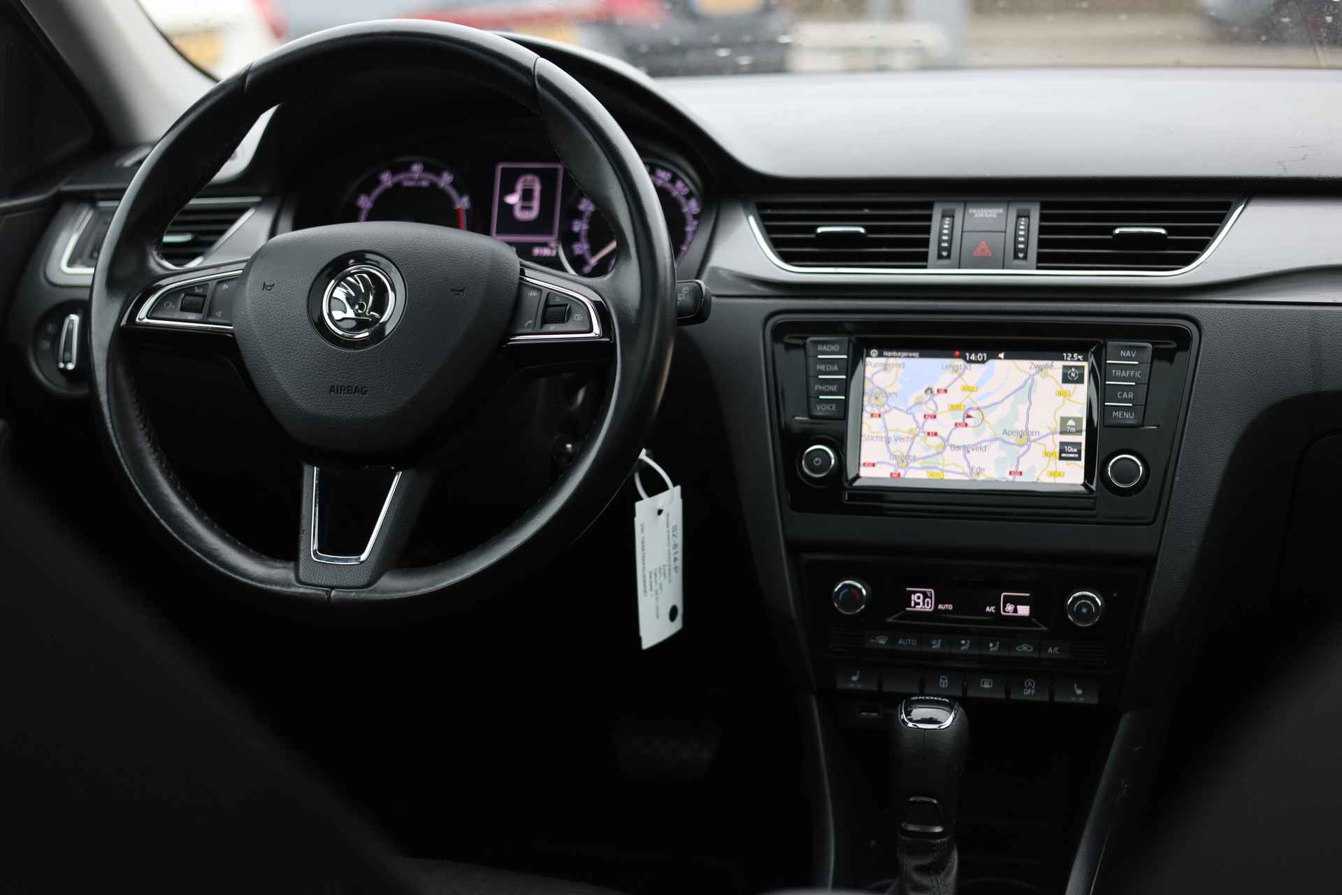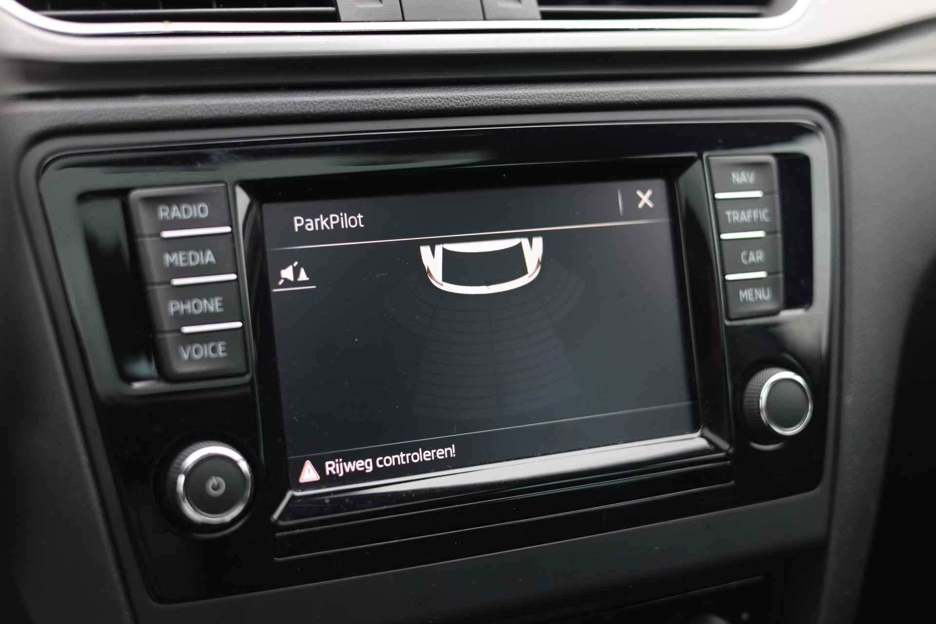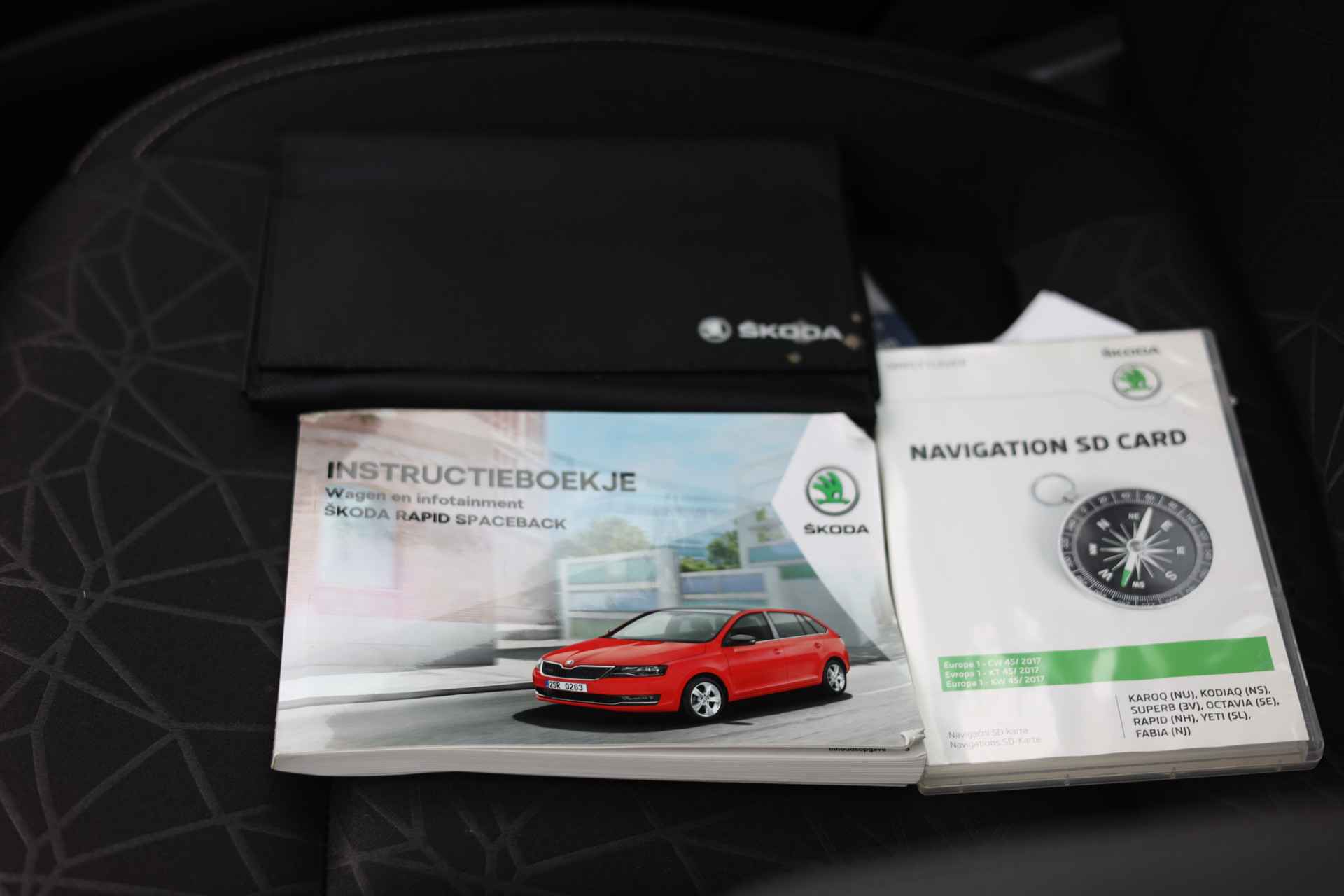 Spraaksturing is onderdeel van de uitrusting van deze auto. Met uw stem kunt u de belangrijkste voertuigfuncties bedienen. Ook praktisch: deze auto is voorzien van een eigen full map navigatiesysteem. Of het buiten nu warm is of koud, dankzij automatische airconditioning is het binnen altijd behaaglijk. Voor storingvrije digitale radio-ontvangst zorgt de DAB-ontvanger. U kunt bij het inparkeren natuurlijk niet aan alle kanten ogen hebben. Daarom is deze ŠKODA Rapid Spaceback voorzien van parkeersensoren! En deze auto heeft ook cruise control, automatisch dimmende binnenspiegel, lederen stuur, centrale deurvergrendeling met afstandsbediening, boordcomputer en lederen versnellingspook als standaard uitrusting.