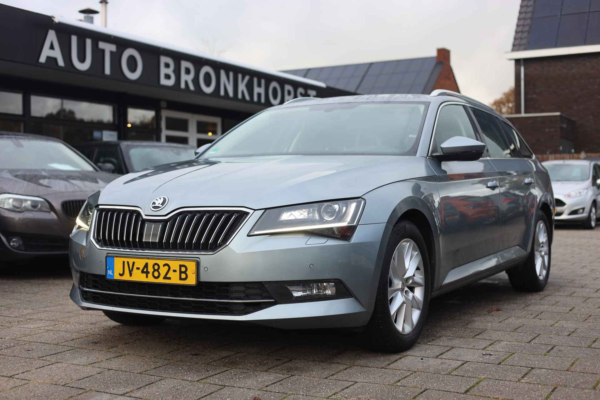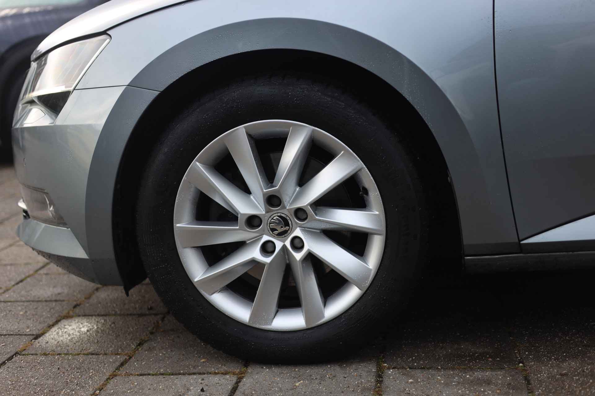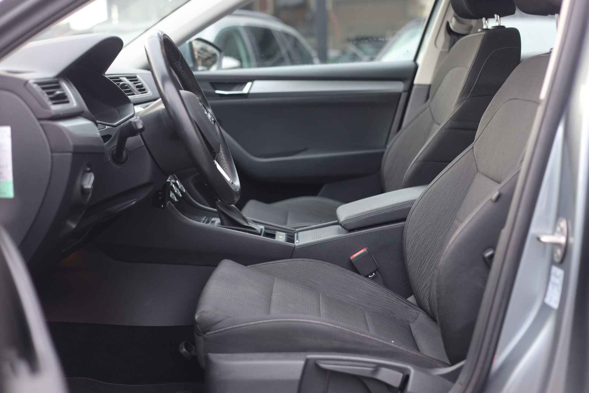 Een optie die de veiligheid verhoogt, is de bediening vanaf het stuur van het audiosysteem (met DAB-radio!) en het navigatiesysteem. Deze ŠKODA Superb Combi is een complete auto anno nu, en dat merk je. Bijvoorbeeld door de aanwezige draadloze oplaadmogelijkheid voor telefoons. Tot de standaard uitrusting van deze auto hoort ook automatische airconditioning. Geen parkeervak is te klein dankzij de assistentie van de parkeersensoren. De automatisch inschakelbare verlichting en regensensor zorgen dat onderweg automatisch de verlichting en de ruitenwissers worden ingeschakeld. Daarmee nemen ze u veel werk uit handen. Extra opties op deze auto zijn: cruise control, automatisch dimmende buitenspiegels, lederen stuur, centrale deurvergrendeling met afstandsbediening en lederen versnellingspook.