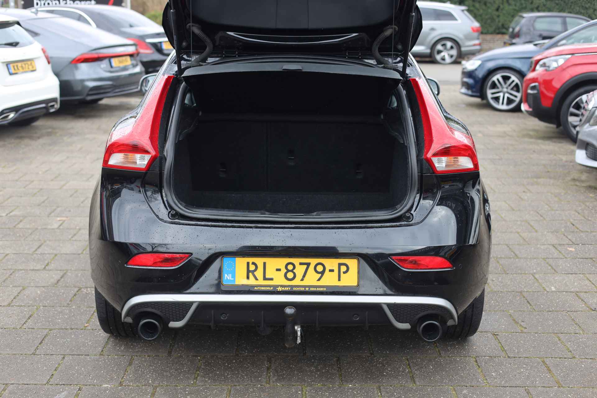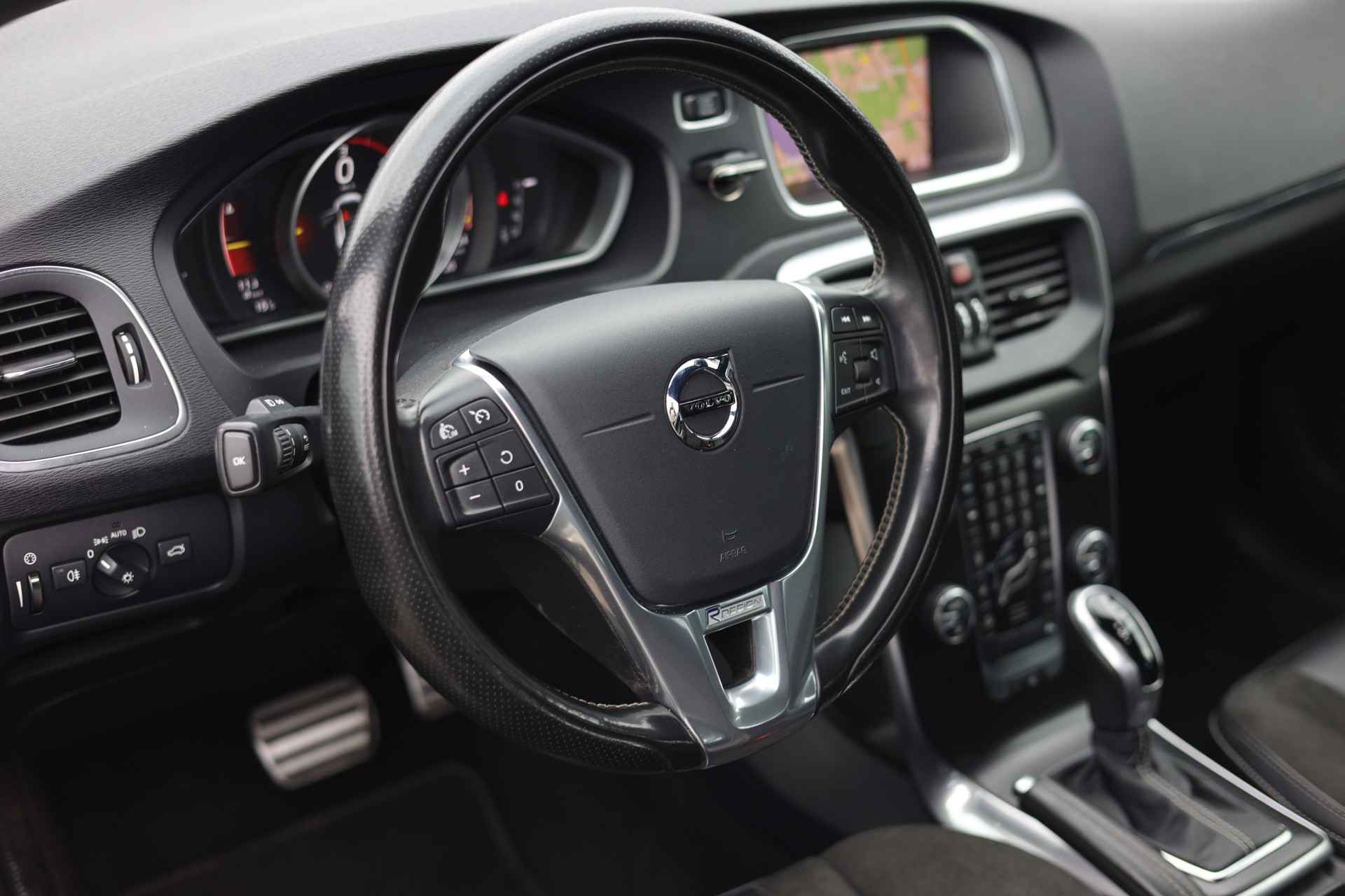 De achteruitrijcamera maakt inparkeren gemakkelijker dan ooit. Spraaksturing is onderdeel van de uitrusting van deze auto. Met uw stem kunt u de belangrijkste voertuigfuncties bedienen. Als u regelmatig met een aanhanger of een fietsendrager op pad bent, is de afneembare trekhaak een praktische extra. Het navigatiesysteem met harde schijf loodst u snel naar uw reisdoel. Ook over uw schouder ziet u onderweg niet alles wat er aan de achterzijde gebeurt. Daarom heeft deze Volvo V40 een achteropkomend verkeer waarschuwing. En deze auto heeft ook R-design, electronic climate control, regensensor, cruise control, sportstuurwiel en dvd-systeem als standaard uitrusting.